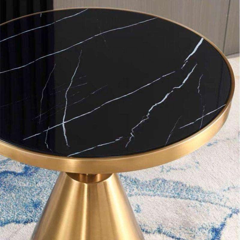 Indian Supplier Luxury Modern Round Side Table with Black Wood Top and Wood Frame for Living Room or Bedroom