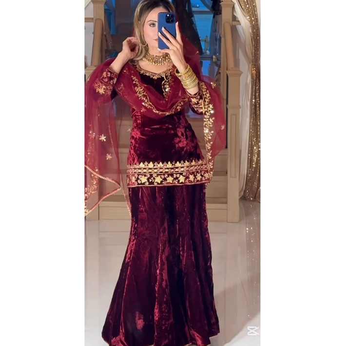 Product Name:Velvet Top or Sharara Plazzo and Dupatta