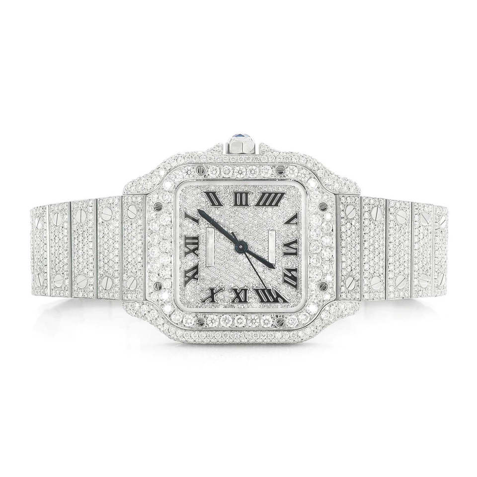Indian Supplier Stainless Steel Square Hip Hop Iced Quartz Watch Glass Dial 41mm Diamond Accented Luxury Fashion Jewelry Unisex