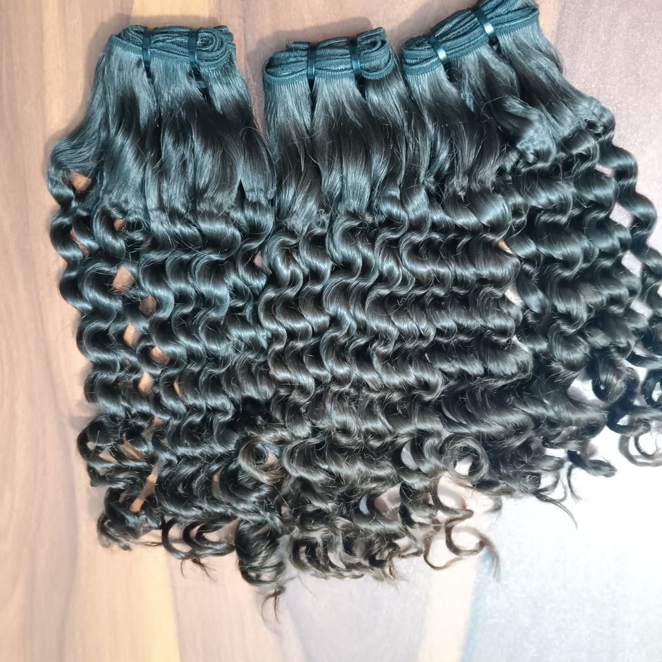 Extensions de cheveux humains bruts non transformés de qualité supérieure du temple indien Paquets de cheveux de trame de style bouclé ondulé de couleur naturelle
