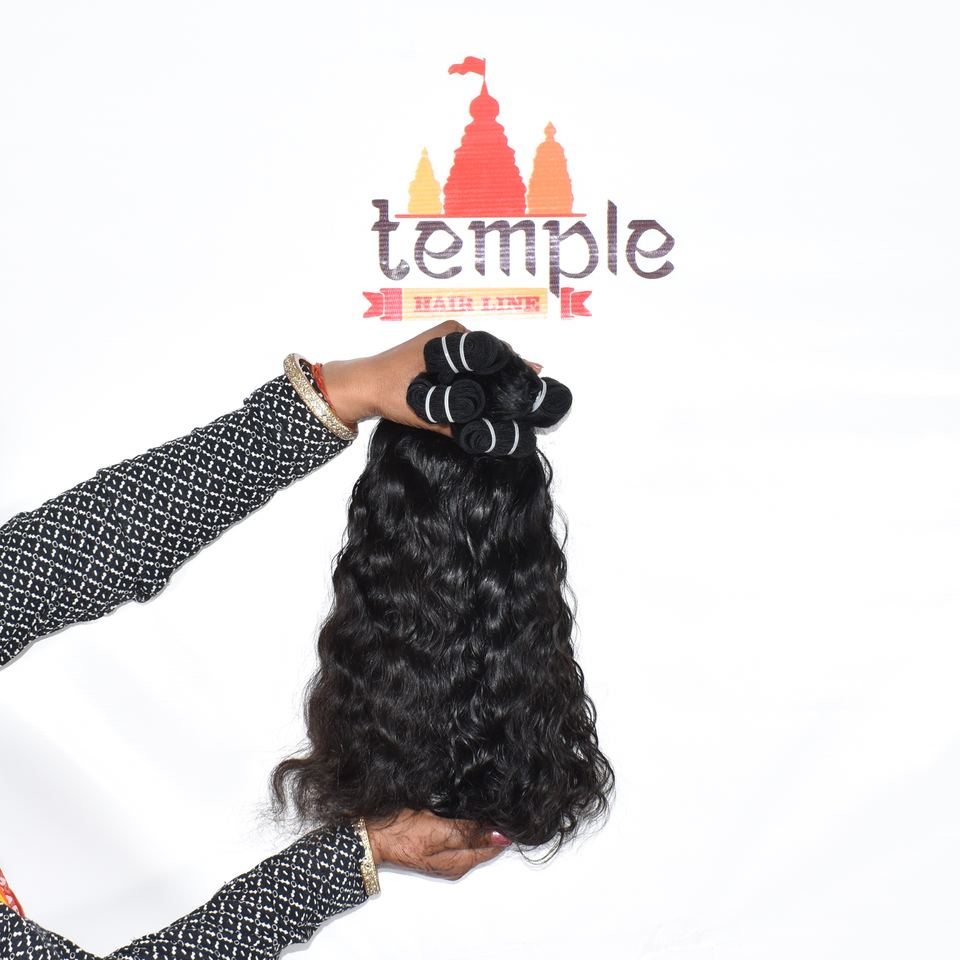 Traitement de la couleur naturelle brute du temple indien aucun femmes noires cuticule aligné machine double trame extensions de cheveux humains à ondes profondes