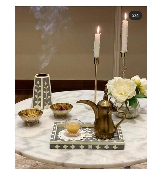 Plateau en os incrusté fait main, cadeau du Ramadan, best-seller en Inde, brûleur d'encens Bakhoor, brûleur d'oud arabe, noir et blanc, taille personnalisée EPCH
