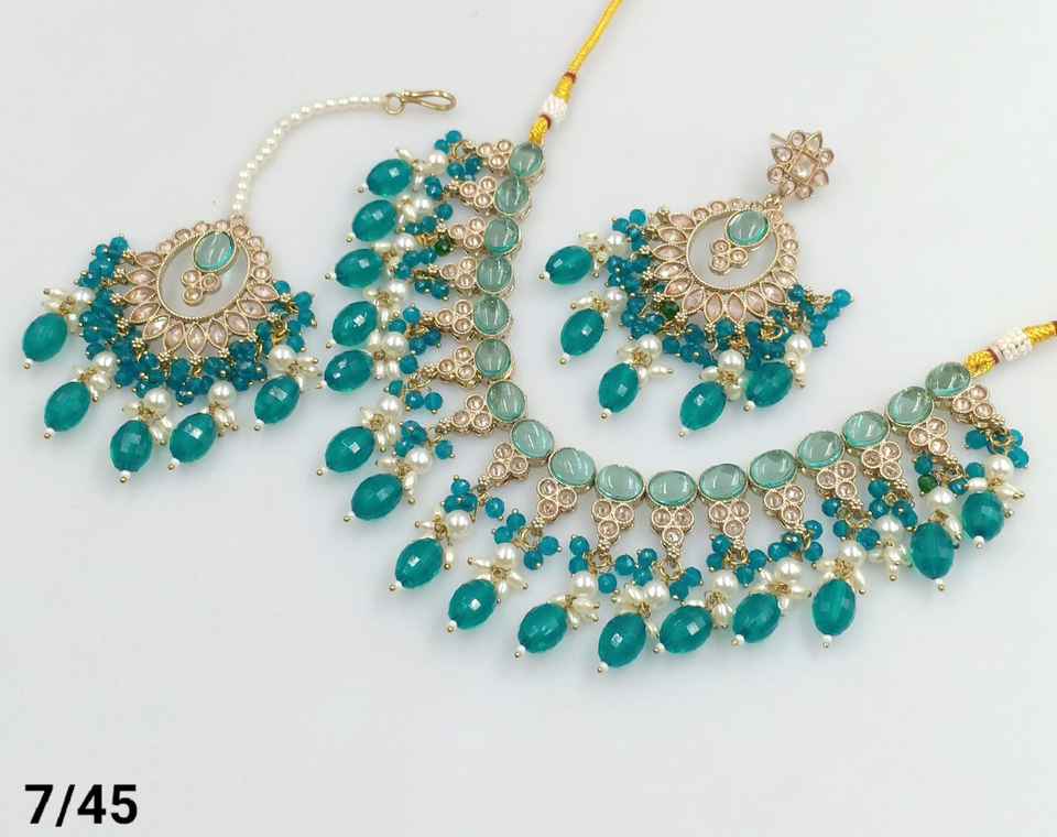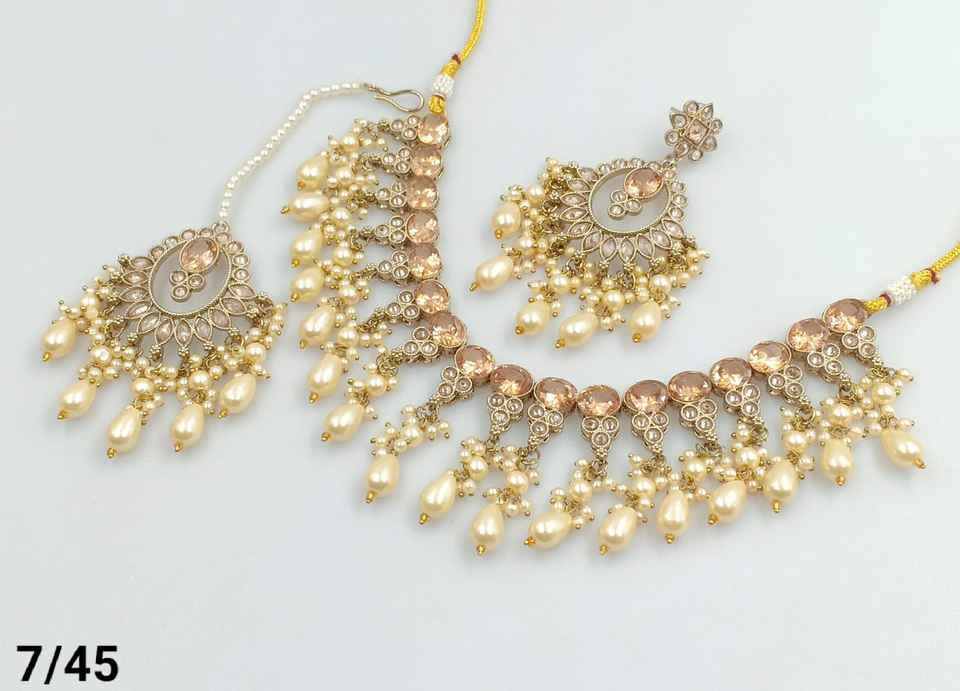 DERNIÈRE ANTIQUE MOTIPEARL & DROP COLLIER FANTAISIE À LA MODE PLAQUÉ OR AVEC ENSEMBLE DE BOUCLES D'OREILLES MANGTIKKA ET ENSEMBLE DE BIJOUX FEMMES
