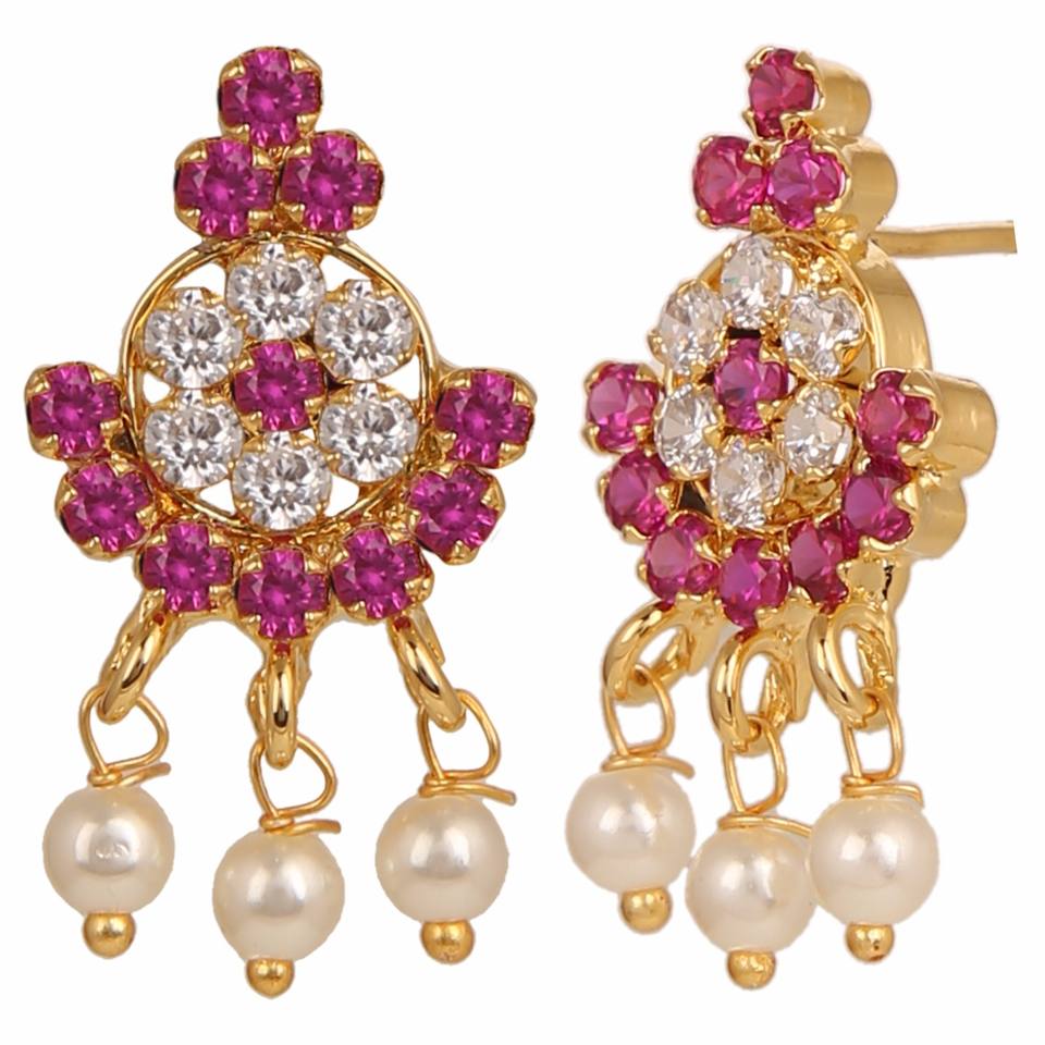 Indian Traditional Bridal pink and White Floral Design Stone with Crystal Pearl Necklace Set for Wedding