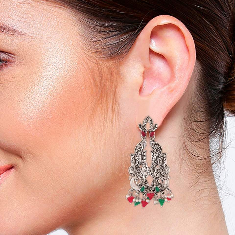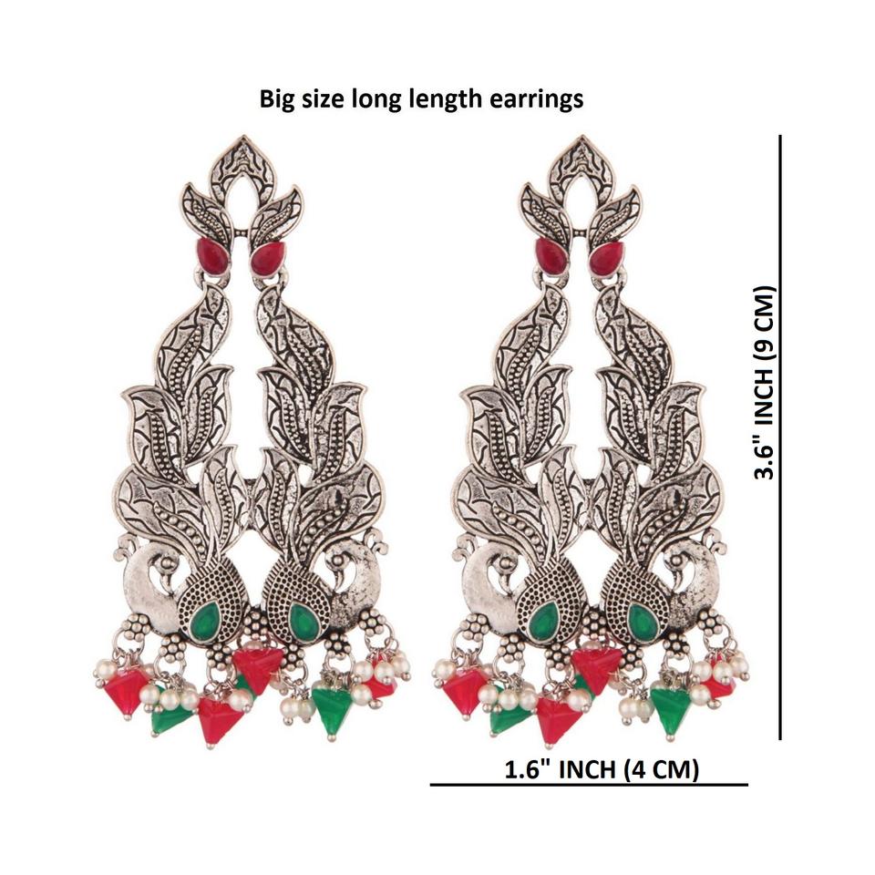 Antique handmade boho vintage oxidized silver earrings set