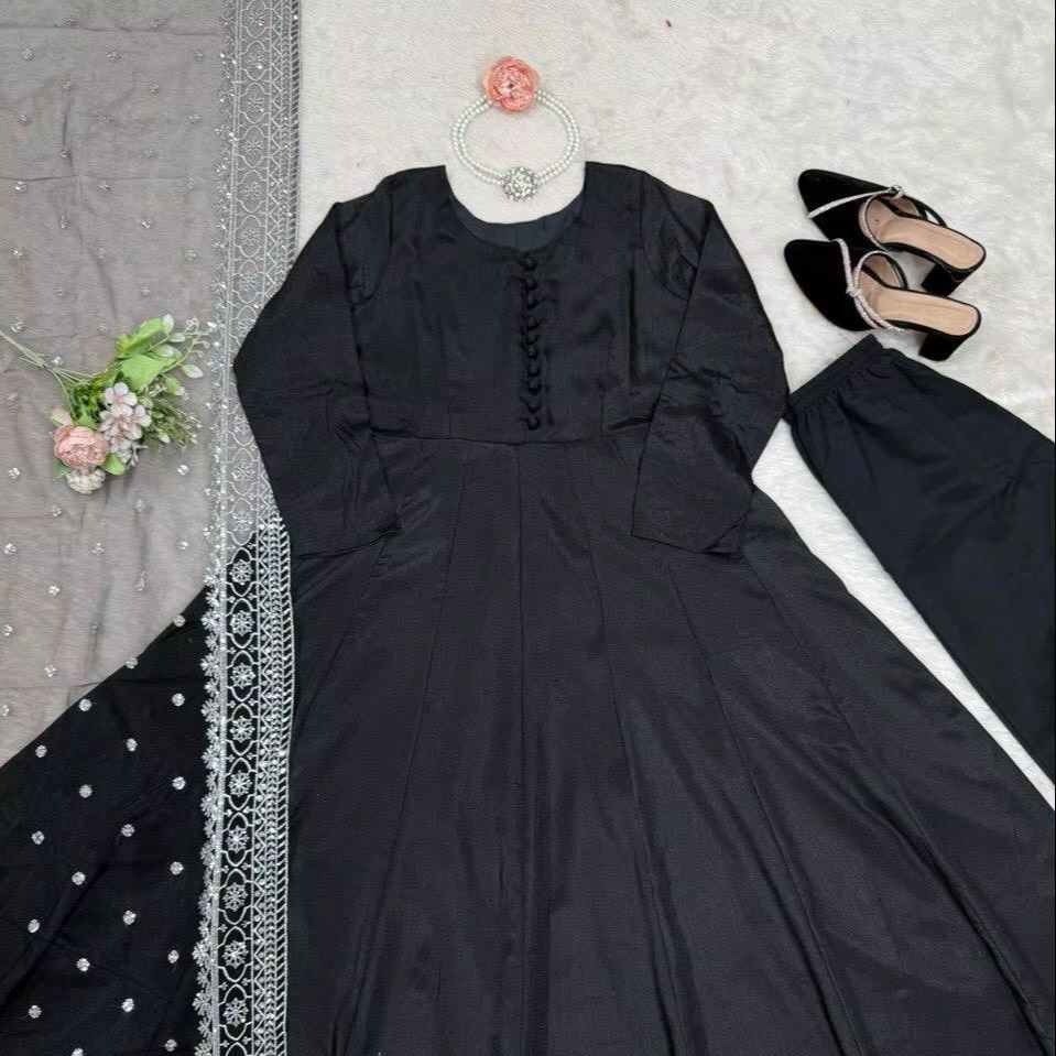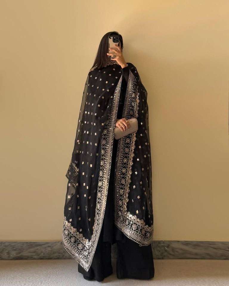 Product Name:Chinon Silk Plain Top Palazzo With Net Sequence Work Dupatta