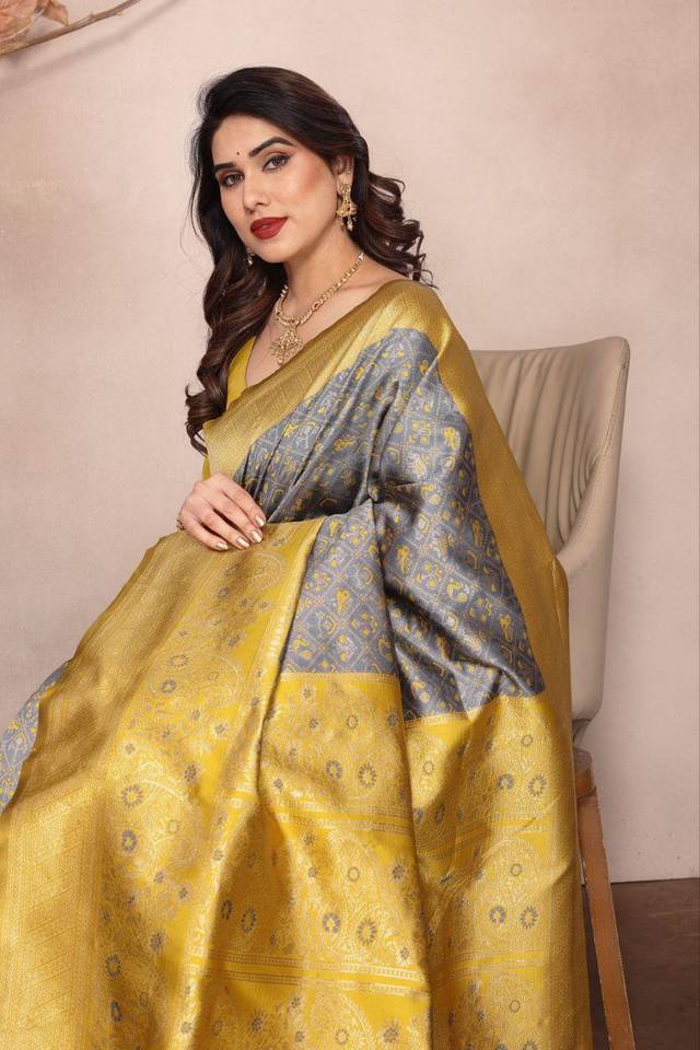 Indian Traditional Designer Saree Collection With Jacquard Digital Print Design In Soft Lichi Silk Fabric For Women Wear