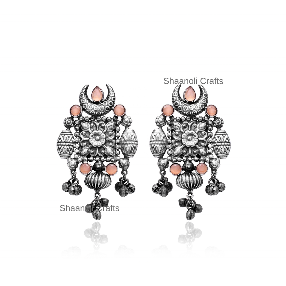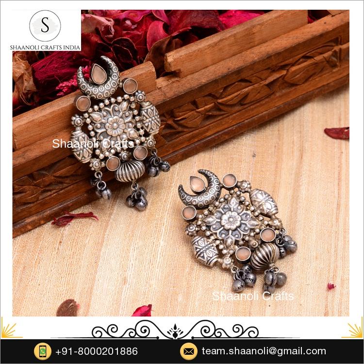 Boucles d'oreilles pendantes en argent de style indien traditionnel, cadeaux de fête, bijoux uniques en argent oxydé pour les femmes, pour les occasions d'anniversaire