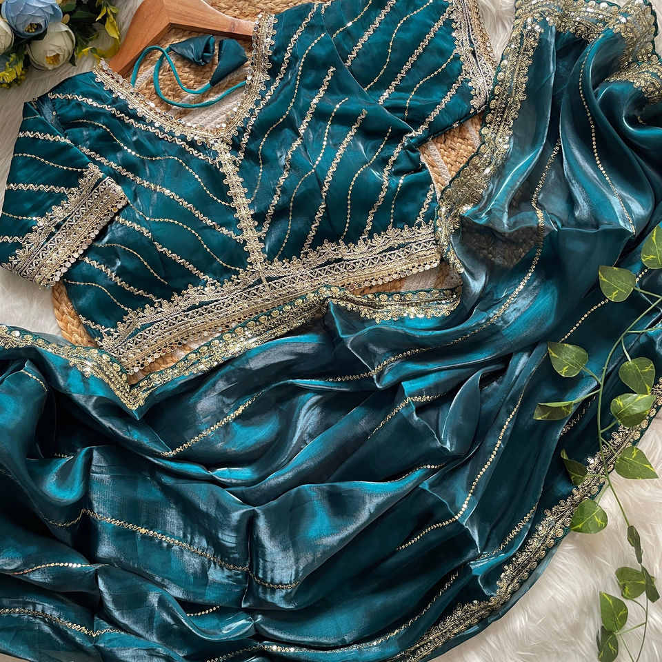 Saree en soie douce exclusif traditionnel indien SEQUENCES DE BRODERIE TRAVAIL élégant nuptiale fête de mariage porter indien Boutique Sari