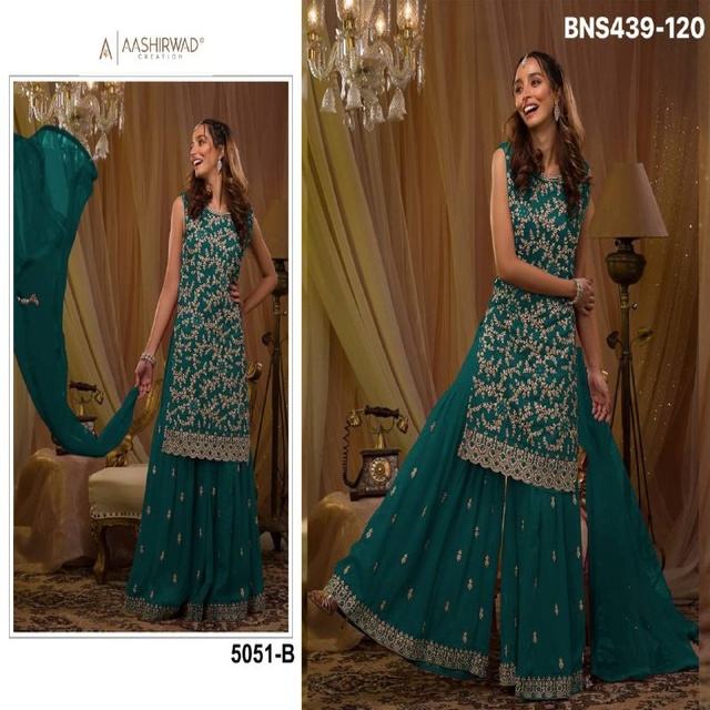 Nom du produit:Ensemble Salwar Georgette avec Broderie, Sequins et Miroirs