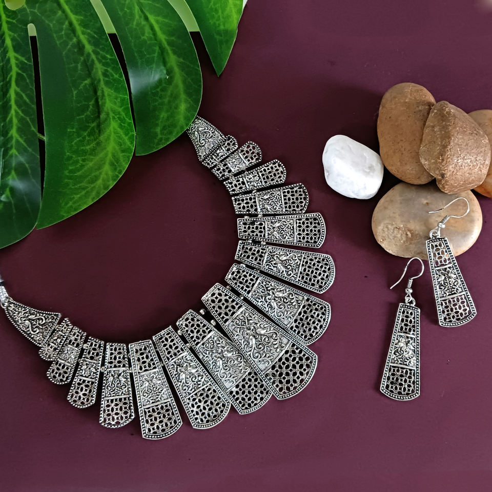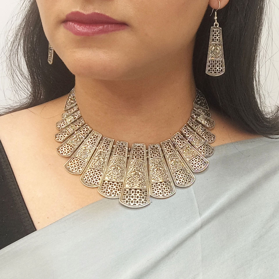 Feature:Engraved and embellished with filigree pattern, bib style necklace