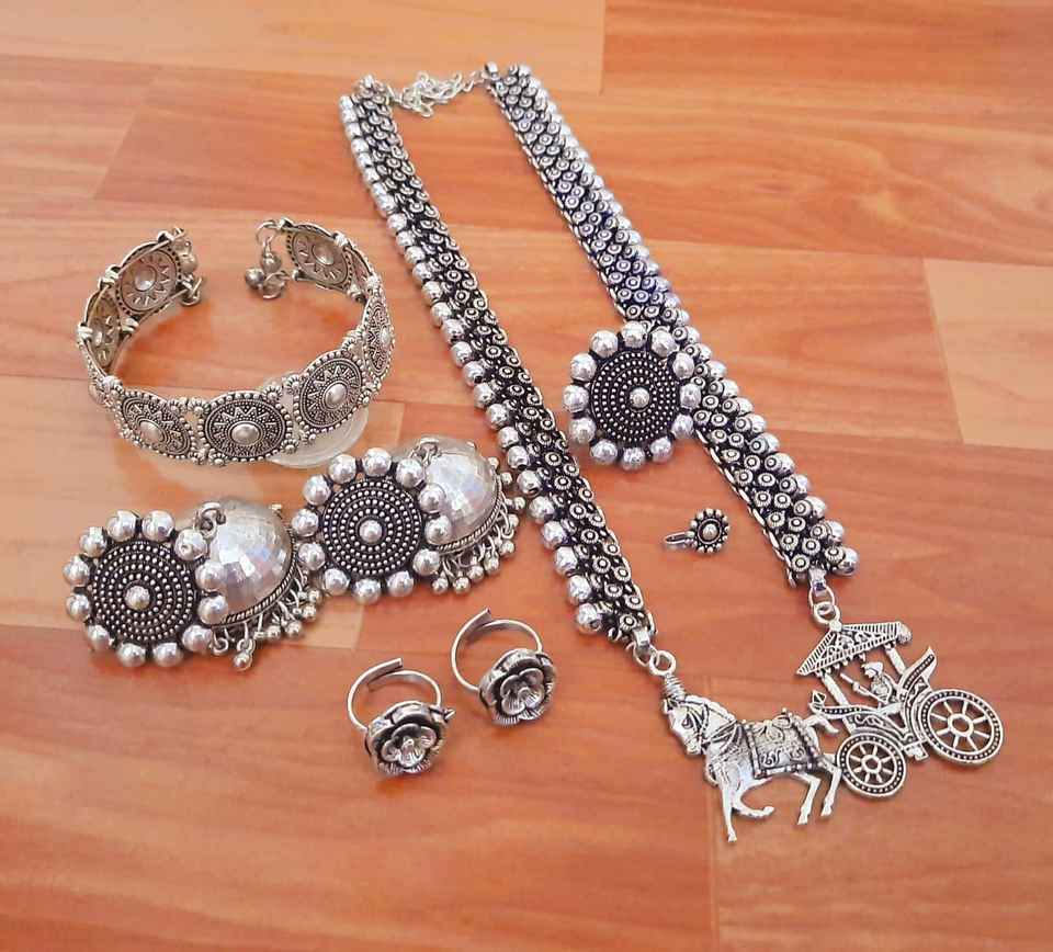 Combo de bijoux oxydé traditionnel indien pour femmes collier, boucles d'oreilles, bracelets, bagues, épingle au nez pour vêtements ethniques et de fête