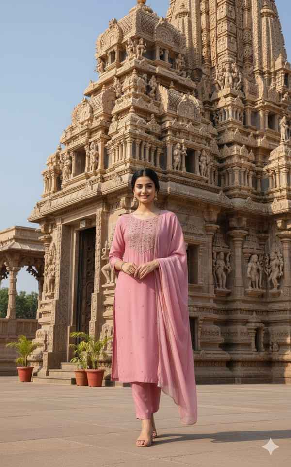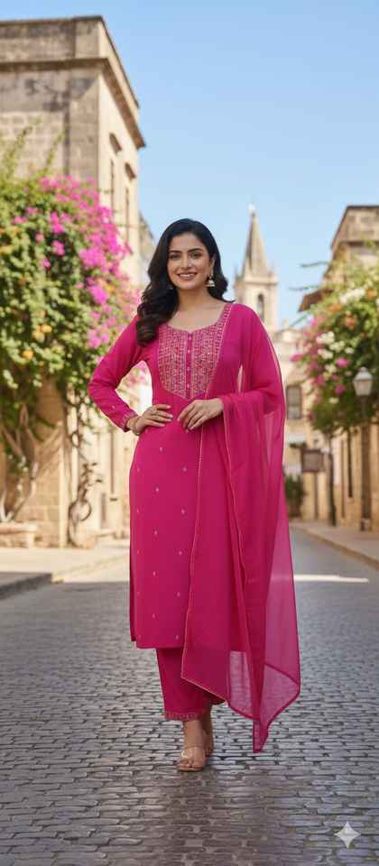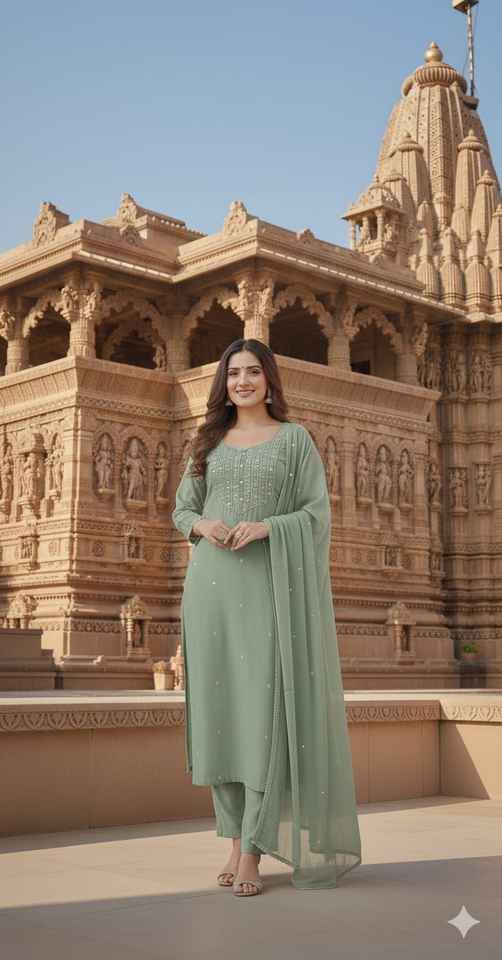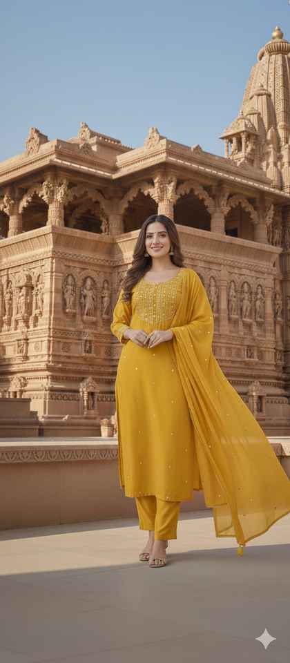 Ensemble Salwar Kameez traditionnel indien en rayonne avec broderies, pour les mariages et les fêtes, à prix abordable.