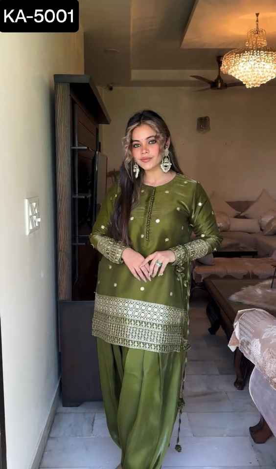 Vêtement traditionnel indien Japon Satin de soie avec déguisement et ensemble Dhoti avec Sequnce Work pour mariage et festival Wear Suit