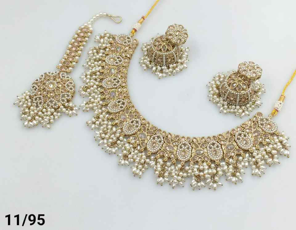 Ensemble indien traditionnel et à la mode plaqué or et long Mala avec boucles d'oreilles et collier combiné Maagtika pour femmes