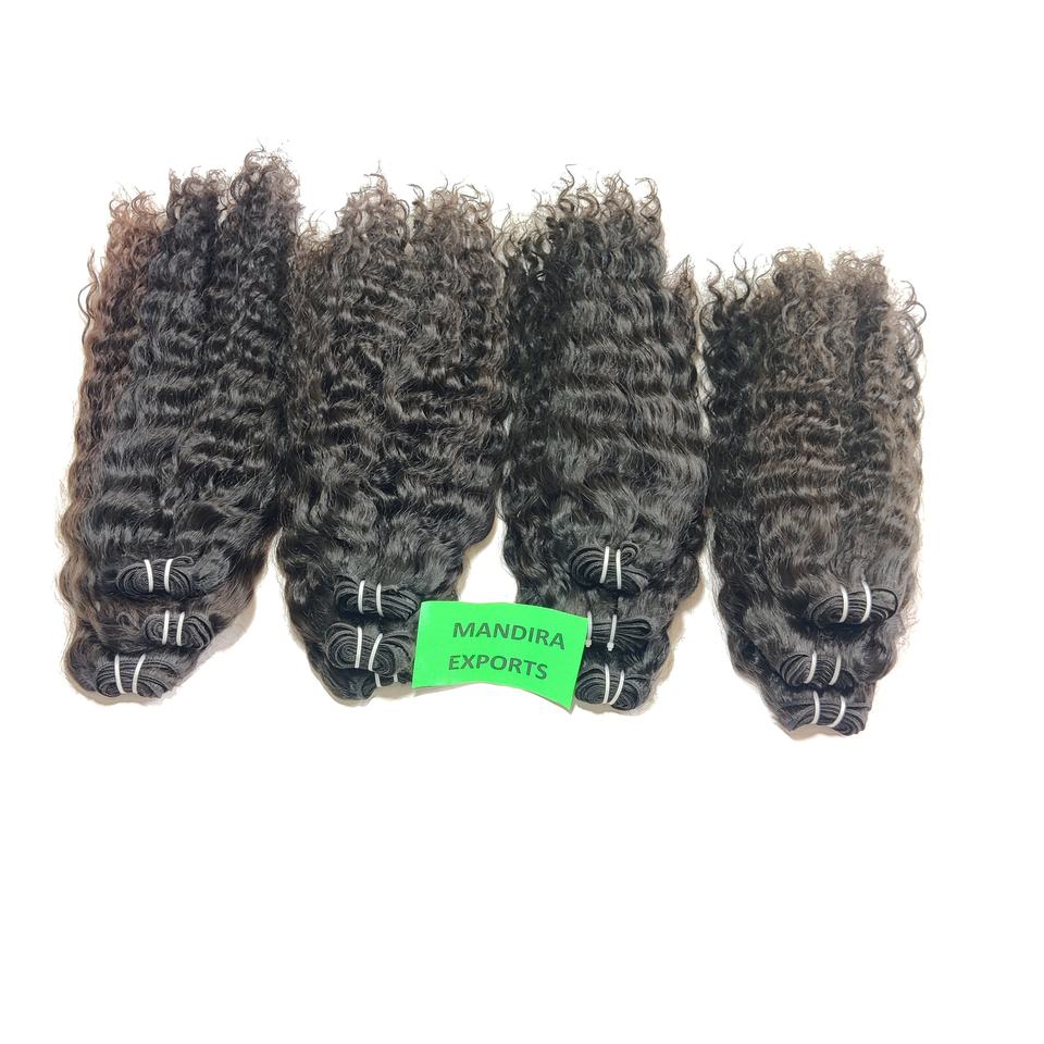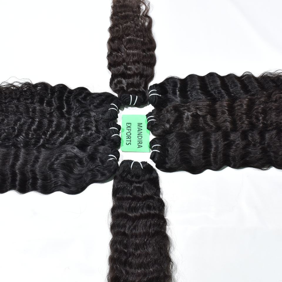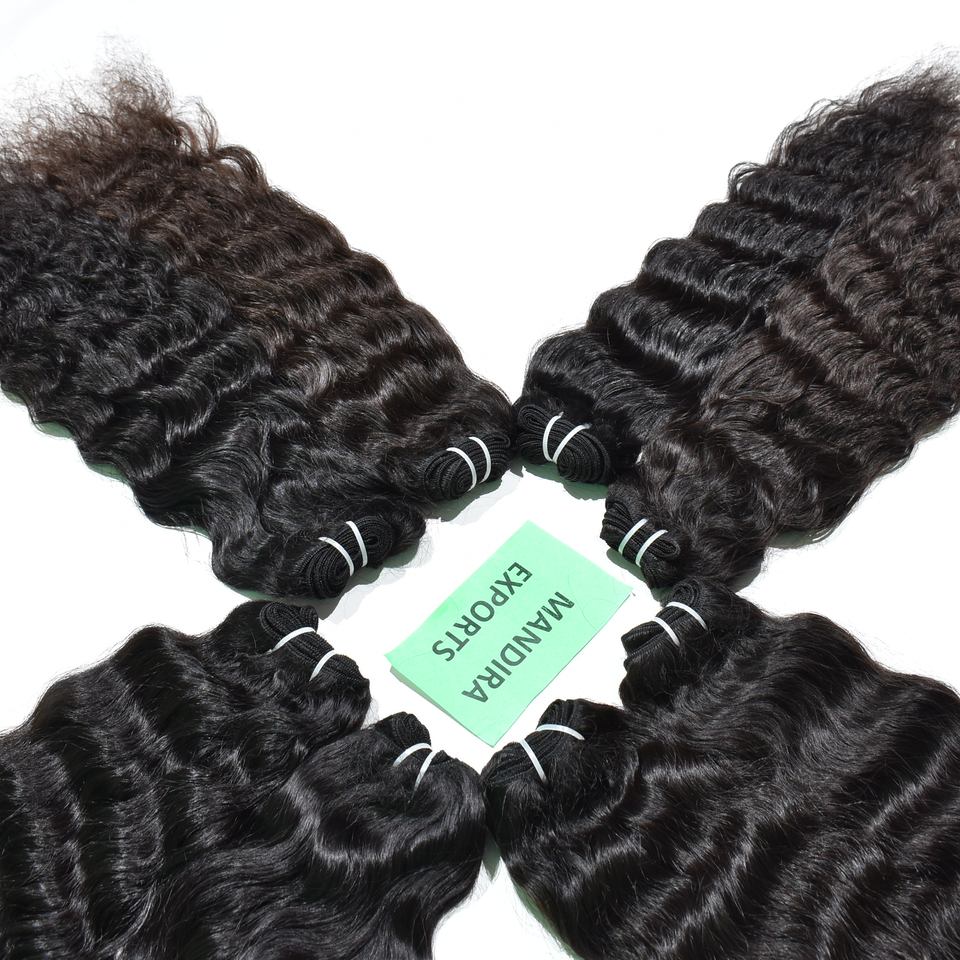 Indien non transformé 100% vente en gros couleur noire cheveux vierges bruts vendeur profond bouclés Double trame faisceaux Temple Extensions de cheveux humains