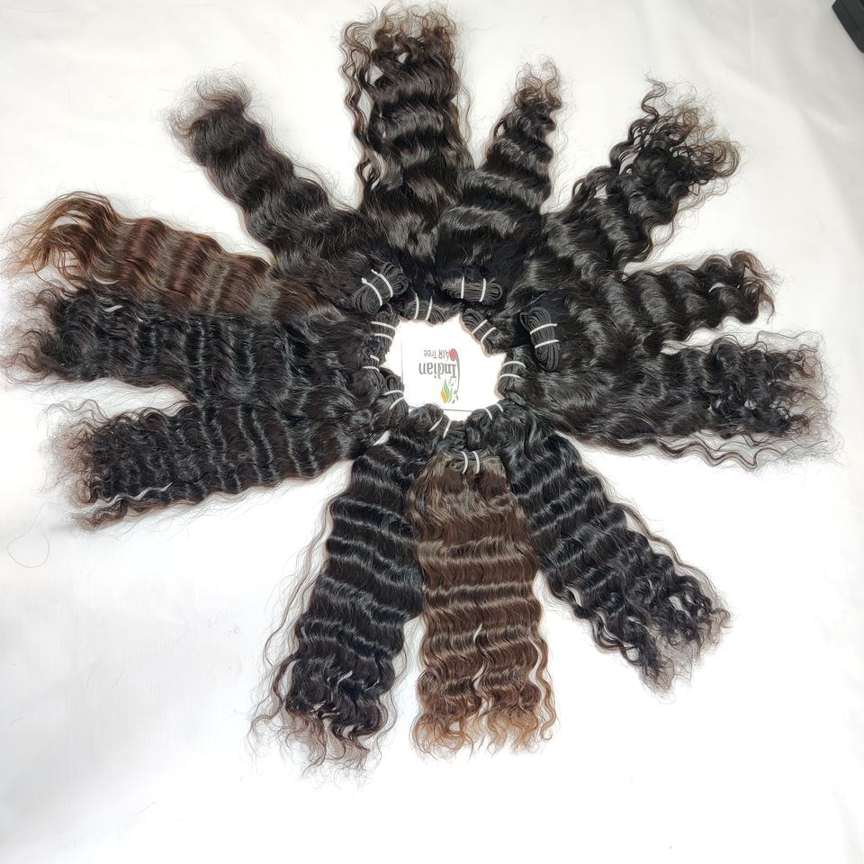 Extensions de cheveux humains vierges indiens non traités, double trame, lisses, ondulés, cuticules alignées, styles par Export