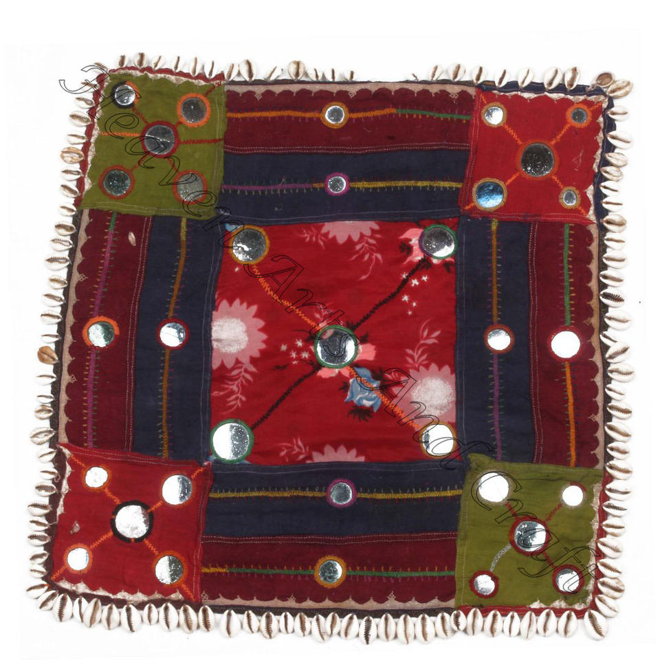 Indian Vintage Embroidery Mirror Work Handmade Patch Sewing Craft Cotton Fabric Indian Mirror Kutch Yoke Hand Embroidered Square