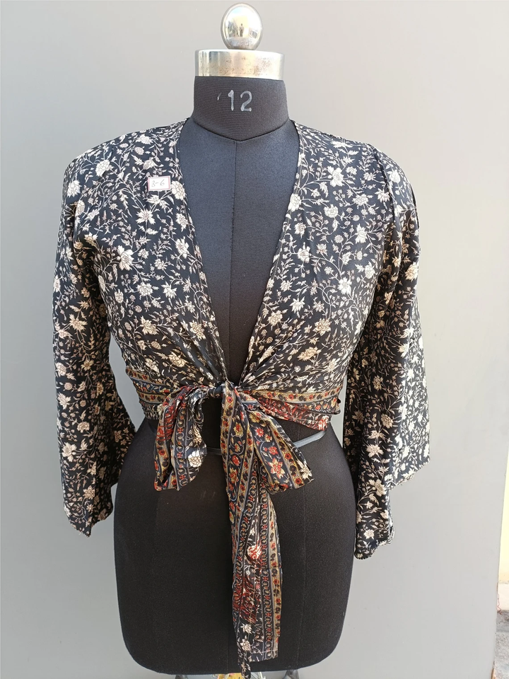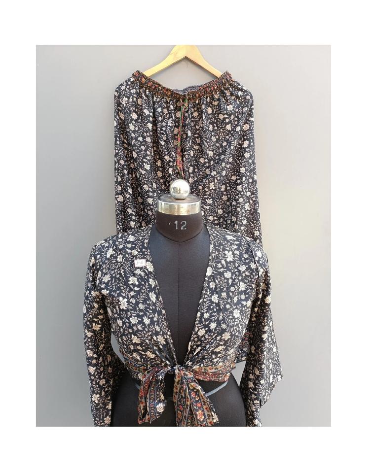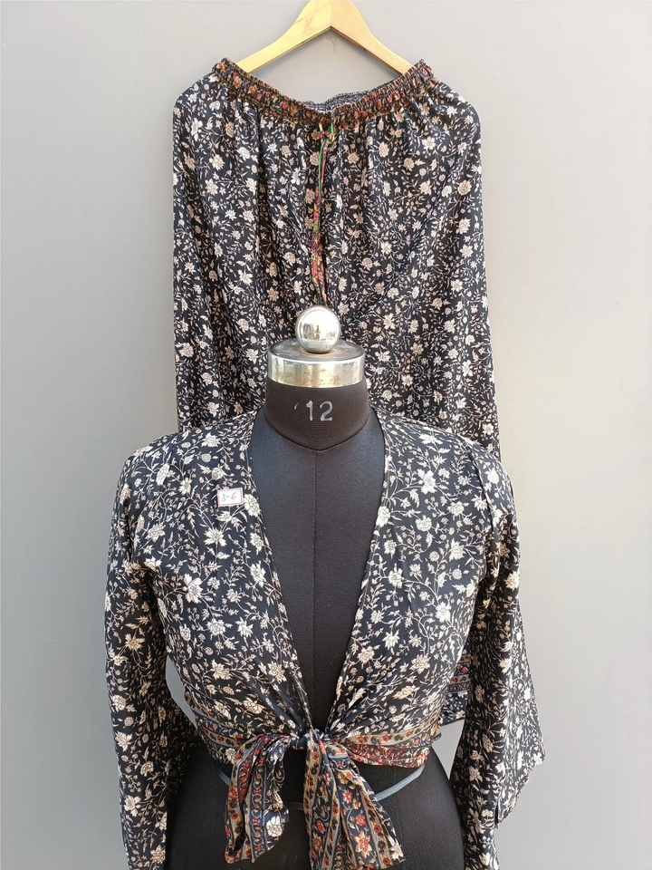 Ensemble pyjama indien vintage en soie recyclée pour femme haut portefeuille décontracté à imprimé floral avec palazzo et haut court robe de plage de nuit