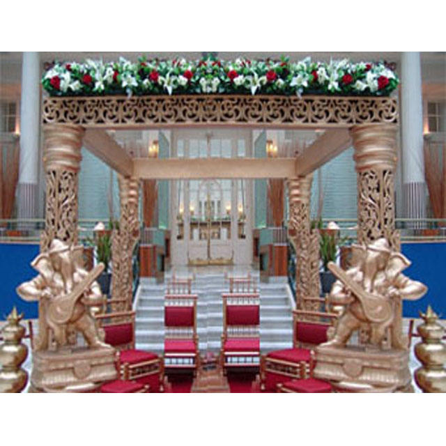 Vente en gros de mand-pieds carrés dorés, sculpté, en Fiber, pour mariage indien, fantaisie, Ganesha