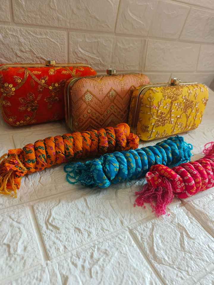 Indian Wedding Return Gift Combo Embroidered Clutch Purse & Pure Silk Bandhani Dupatta Bridesmaid Gift Party Favor Ethnic Set