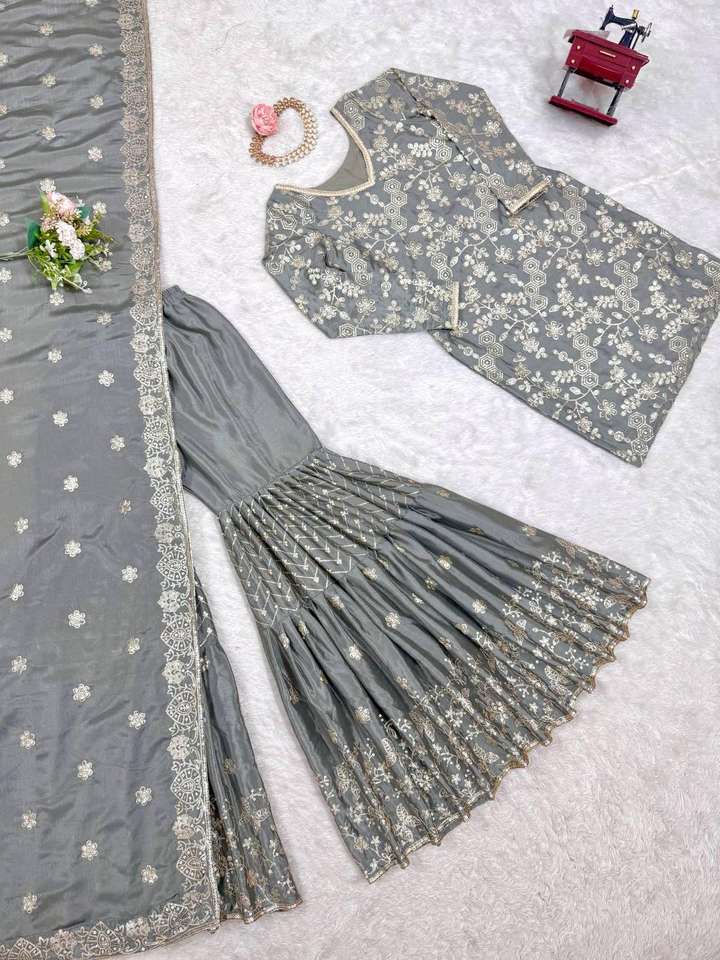 Nom du produit:Sharara et Dupatta en Chinon avec Fil de Soie et Sequins
