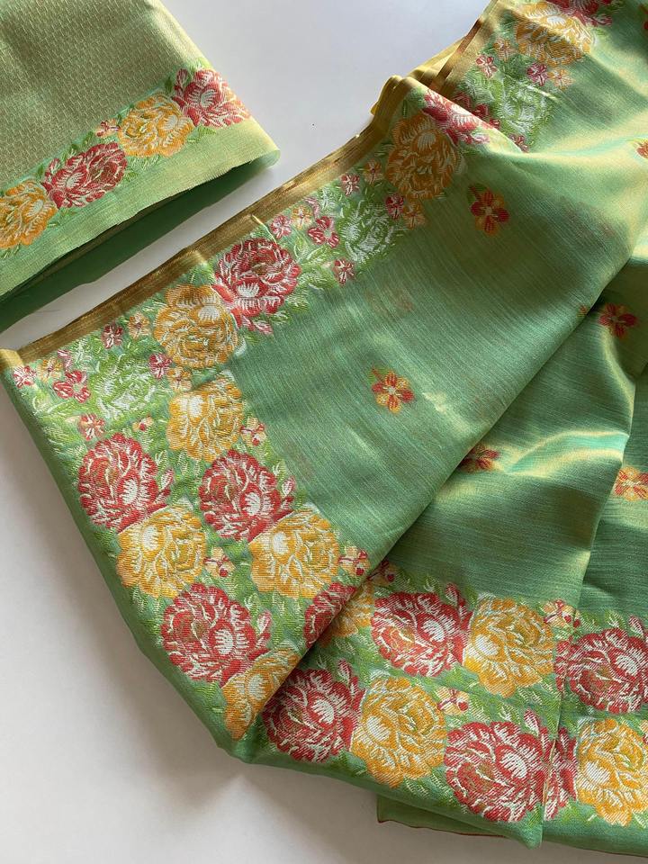 Sari en soie tissée douce pour femmes indiennes avec bordure en jacquard et motifs de tissage riches sur le pallu, en stock, délai de livraison non applicable