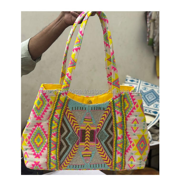 Indian Women's Bohemian Style Designer Handmade Envelope Clutch Messenger Bags Beaded Evening Shopping Party Bags