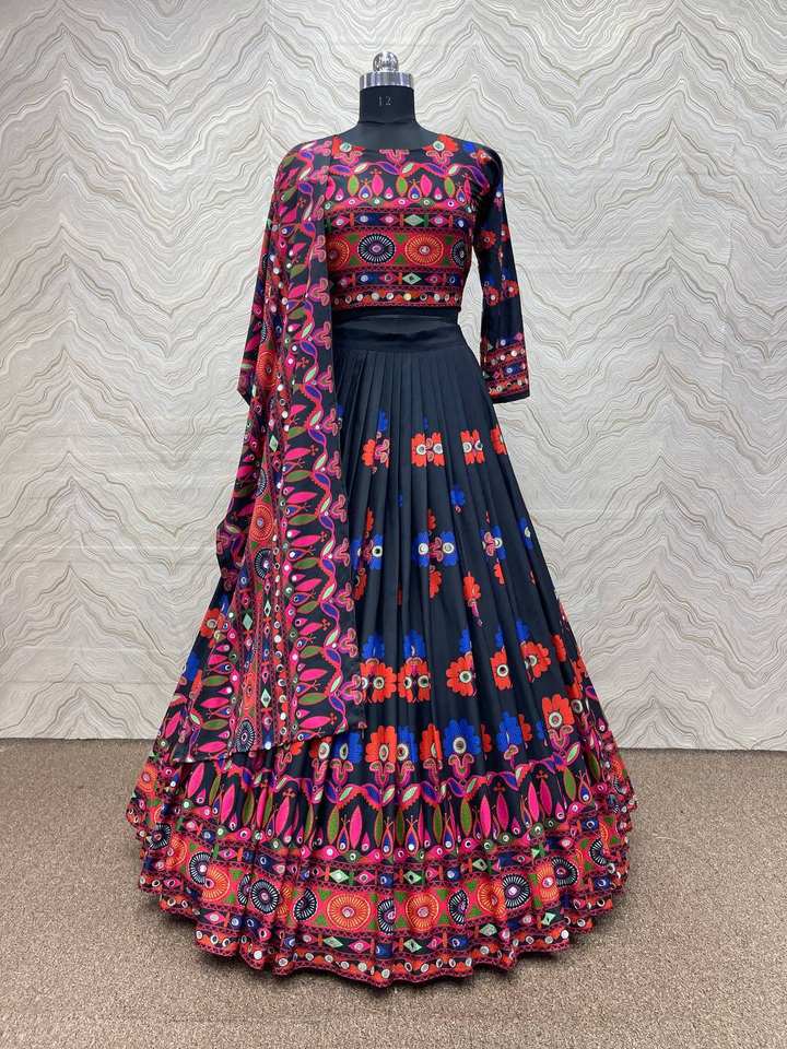 Nom du produit:Impression numérique en soie beurre avec miroir Lehenga Choli