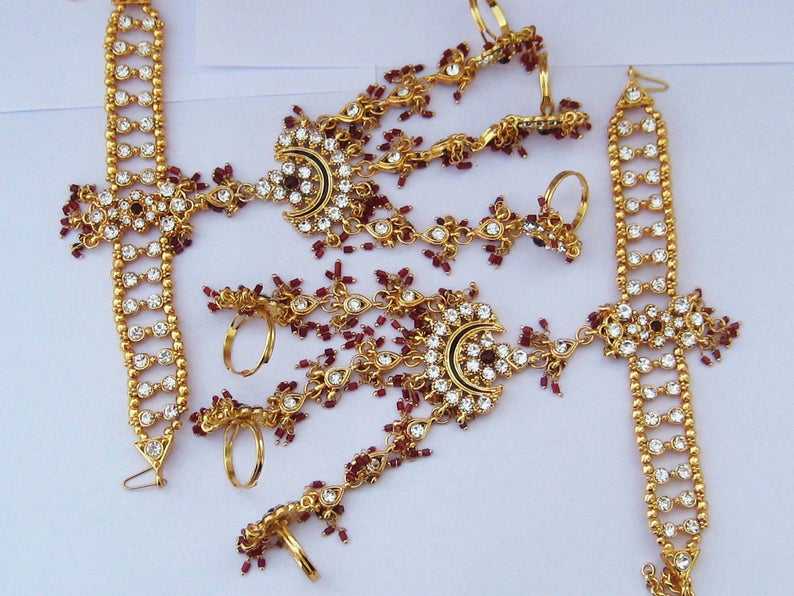 Jewelry set:Women Bridal Choker Rani Haar Earring Set and Headpiece Bracelet