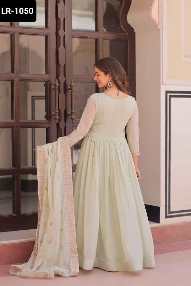 Indian and Pakistani Style Star Georgette With Beads and Sequins Multi Embroidered Work Anarkali Gowns with Dupatta for Women