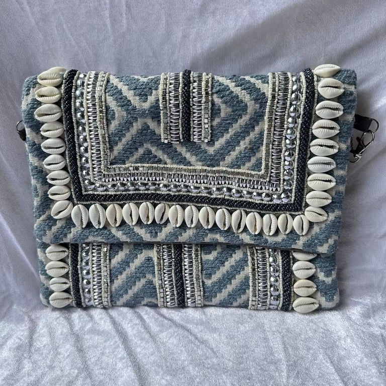 Sac à bandoulière ethnique géométrique de luxe indien orné de coquillages, style bohème, pour femmes