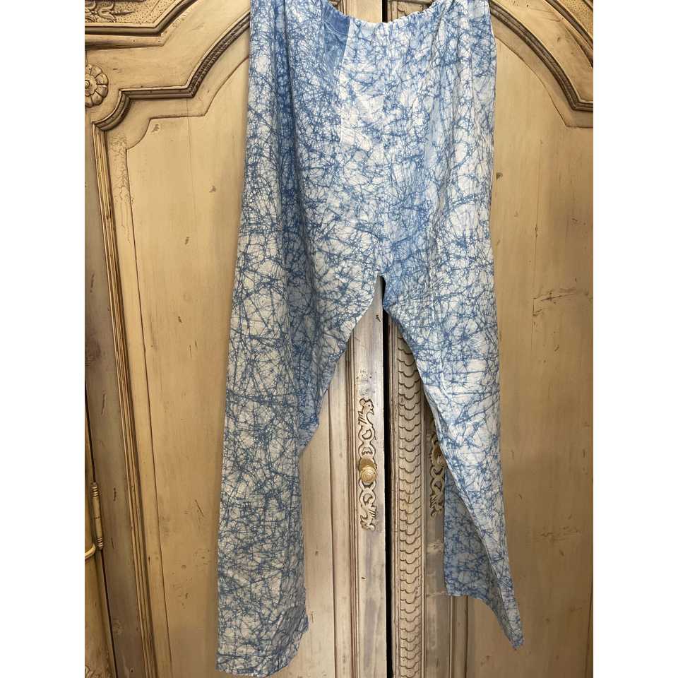 Pantalon à cordon de serrage en batik indigo avec impression faite à la main