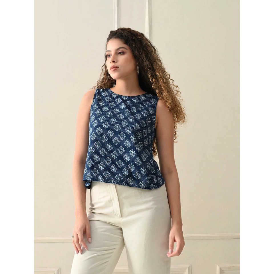 Design:Sleeveless top with straight fit