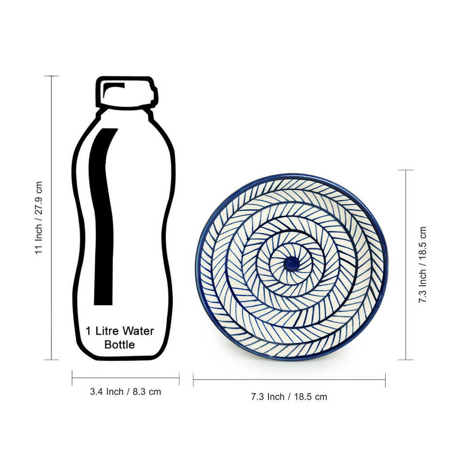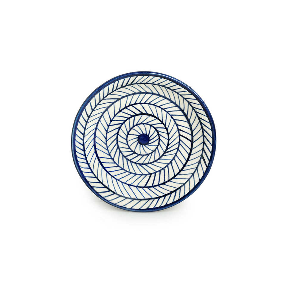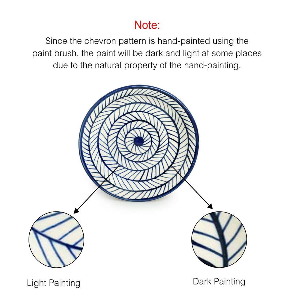 Ensemble de 2 assiettes d'appoint/quart de plat en céramique peintes à la main Indigo Chevron allant au micro-ondes