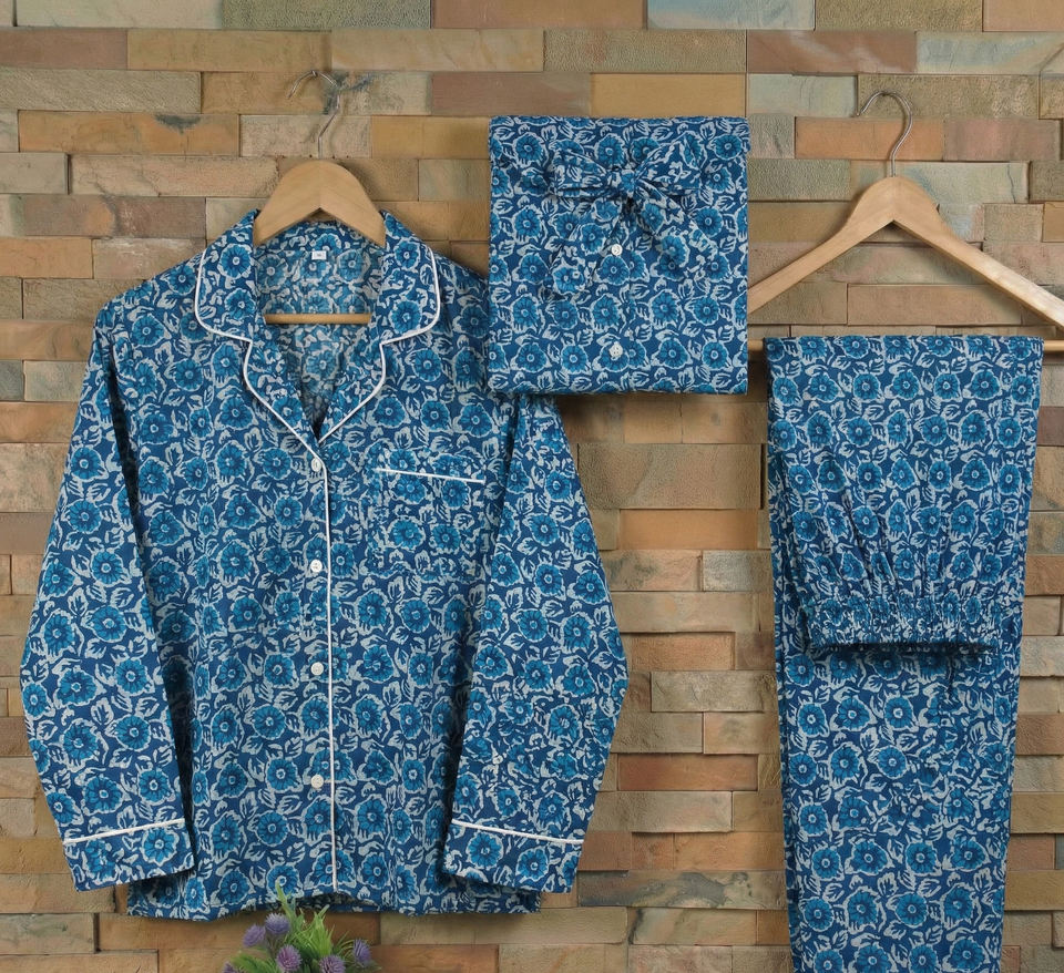 Ensemble de pyjama pour femme en coton tissé thermique indigo imprimé à la main, doux et respirant, vente en gros Inde