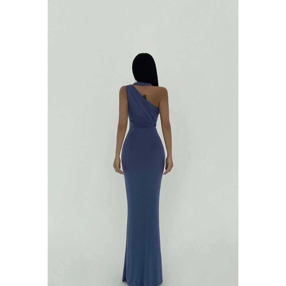 Indigo Marcia ODM XL Luxury Ball Gown A-Line Evening Dress Floor-Length Crepe High Collar Modern Shiny Simple Party-Formal Style