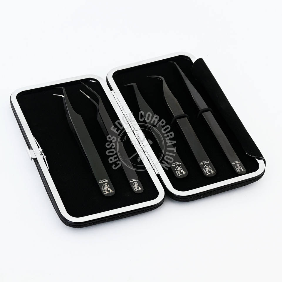 Kit d'extension de cils personnalisé pince à épiler cils pince à épiler couleur noire 45 volume à 90 degrés pince à épiler en acier inoxydable