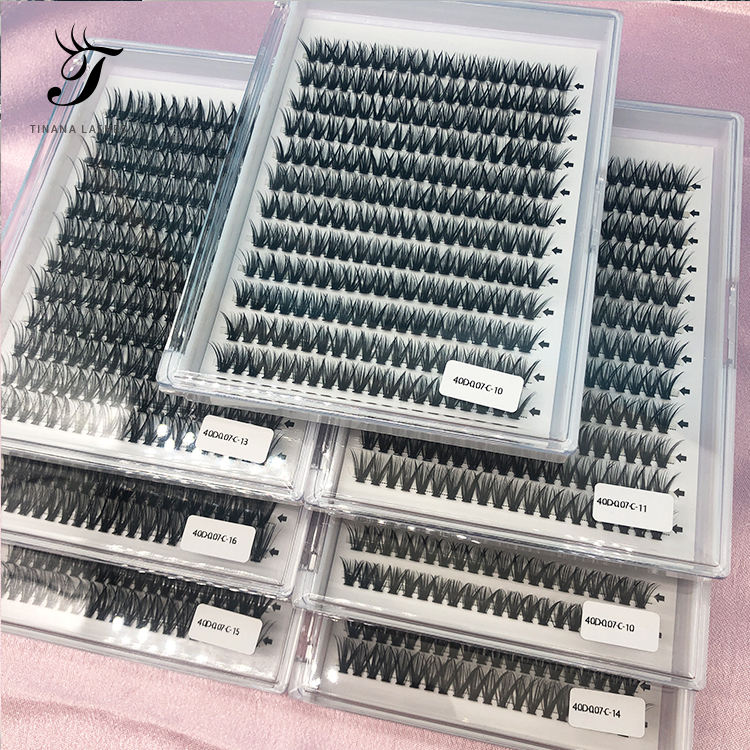 Extensions de cils individuelles DIY, bouquets de cils, faux cils, cils russes, 12 rangées, marque TINANA, vente en gros