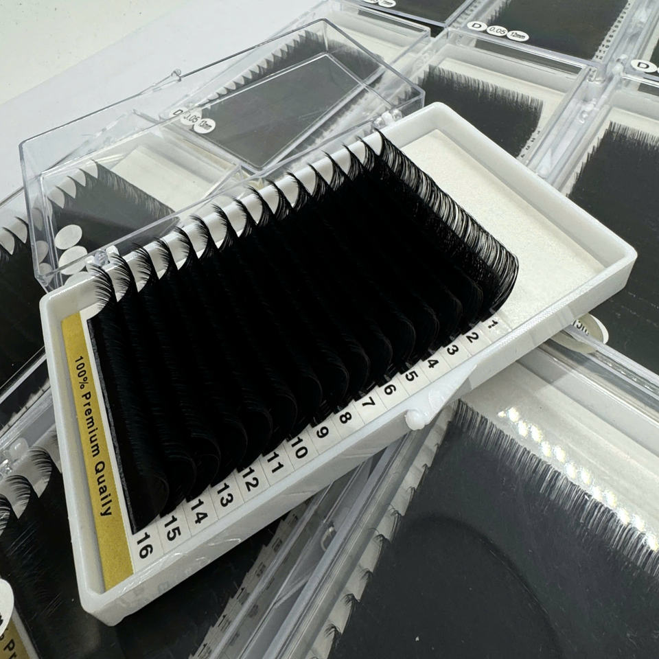 Plateau individuel pour extensions de cils, 12/16 rangées, fibres synthétiques PBT coréennes, longues, foncées, mates, marque privée OEM