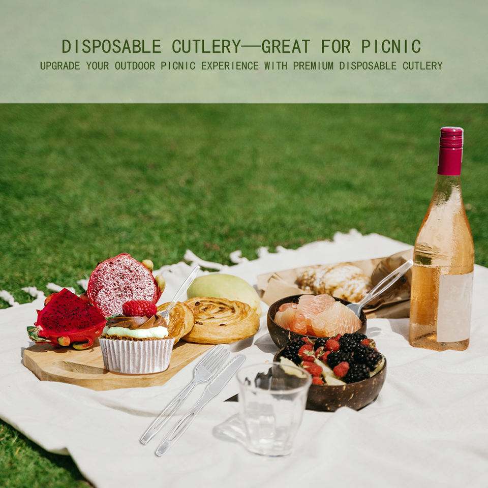 Ensemble de couverts compostables biodégradables emballés individuellement Couteau en plastique CPLA robuste Fourchette Cuillère Couverts emballés jetables