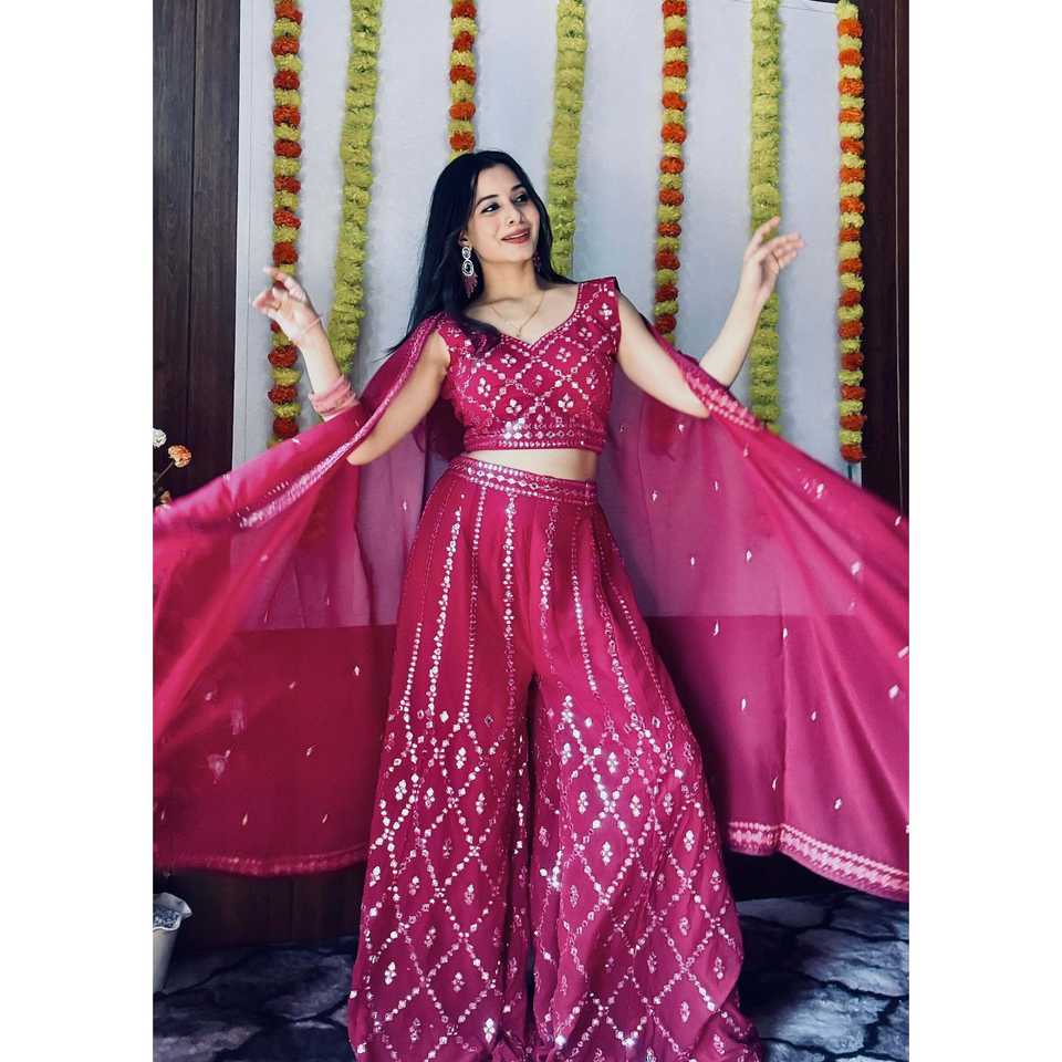 Indo Western Party Jumpsuit with Foil Mirror and Thread Work for Festive Wear