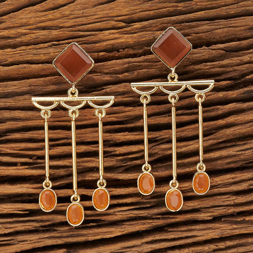 Indo Western Boucle D'oreille À La Mode avec placage d'or 9487 Marron