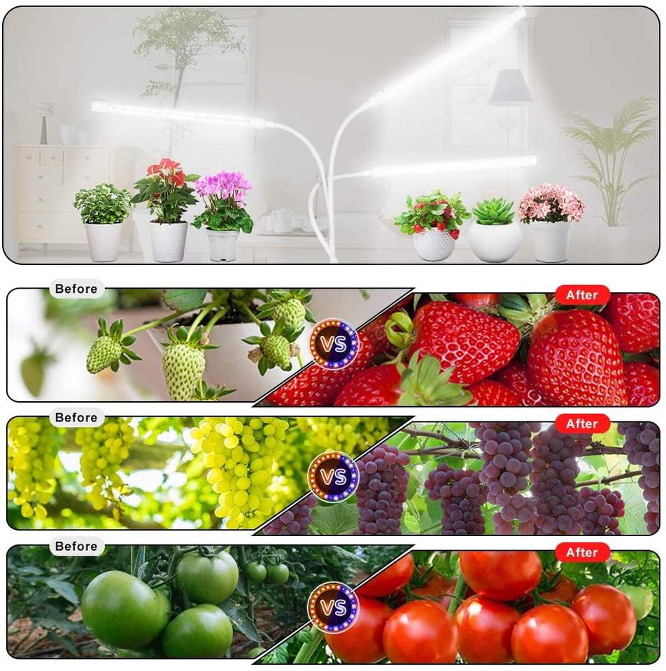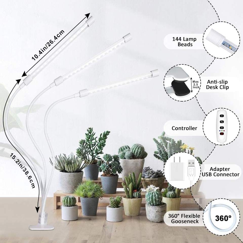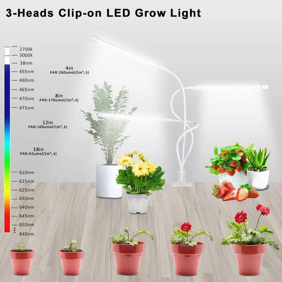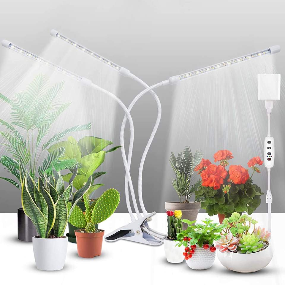 Lampe horticole de croissance LED, 3 têtes réglables, minuterie/connexion usb, spectre complet, intensité variable, éclairage pour culture de plantes, pour l'intérieur et l'extérieur