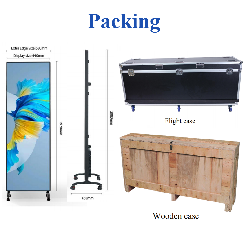 Affichage LED mobile intelligent pour publicité intérieure P1.25 P1.53 P1.86 P2.5, écran LED en aluminium autoportant pour centres commerciaux