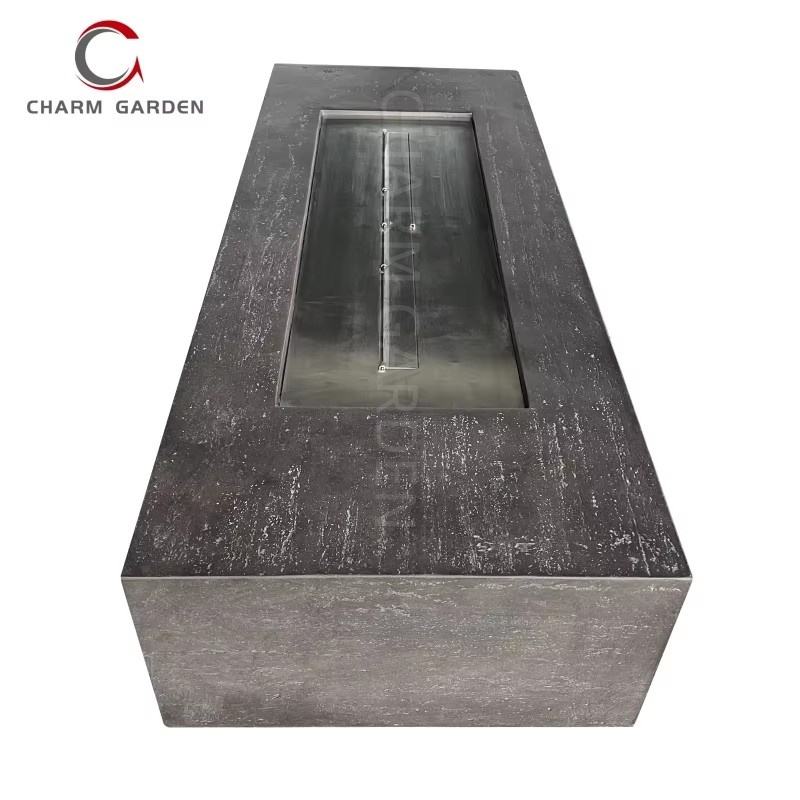 Cheminées d'intérieur au bioéthanol Bio Ethanole Table rectangulaire Table de foyer au bioéthanol en béton beige