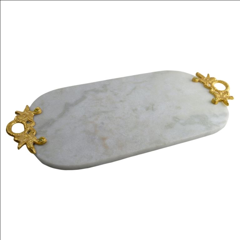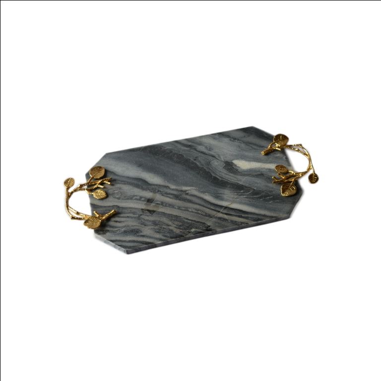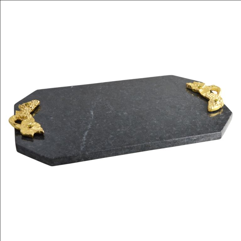 Plateau de service Design d'intérieur blanc vert noir marbre Rectangle avec poignées dorées plateau décoratif en marbre décor de maison