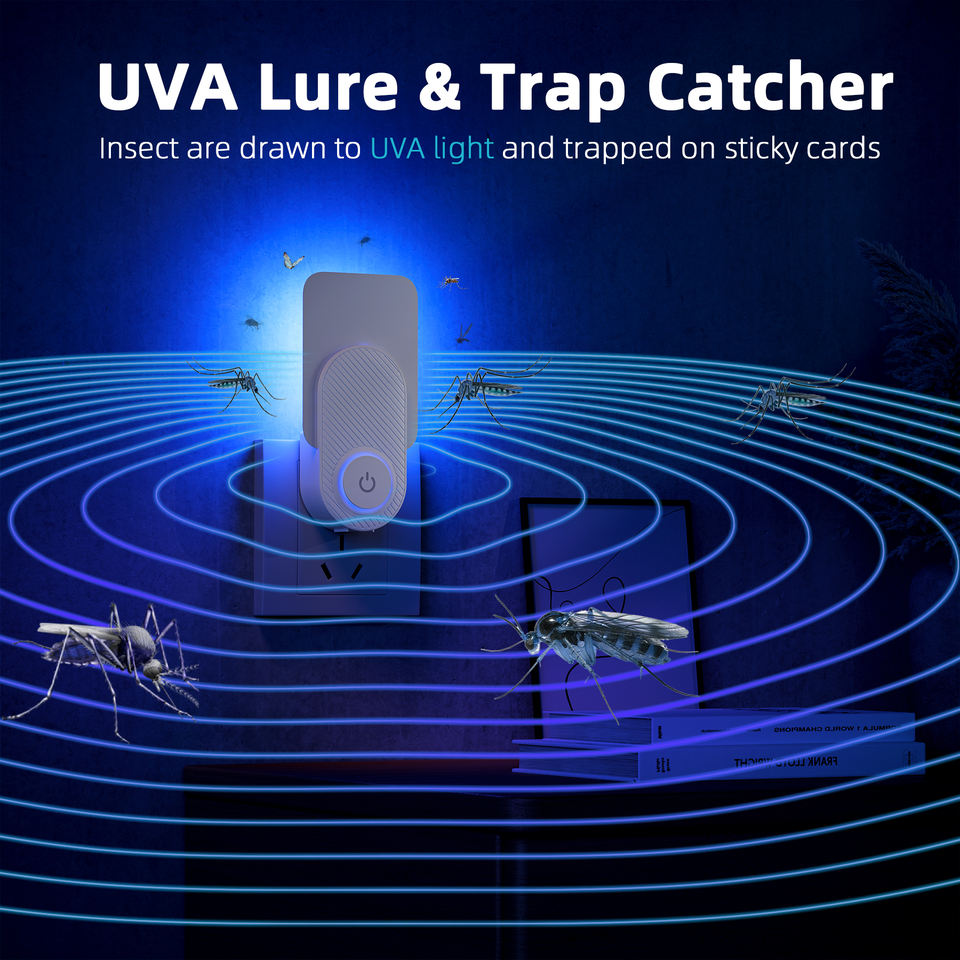 Piège à mouches électronique d'intérieur Tueur de lumière bleue UV intelligent pour insectes Cuisines Attrape-mouches collant Plug-In avec source d'alimentation par batterie