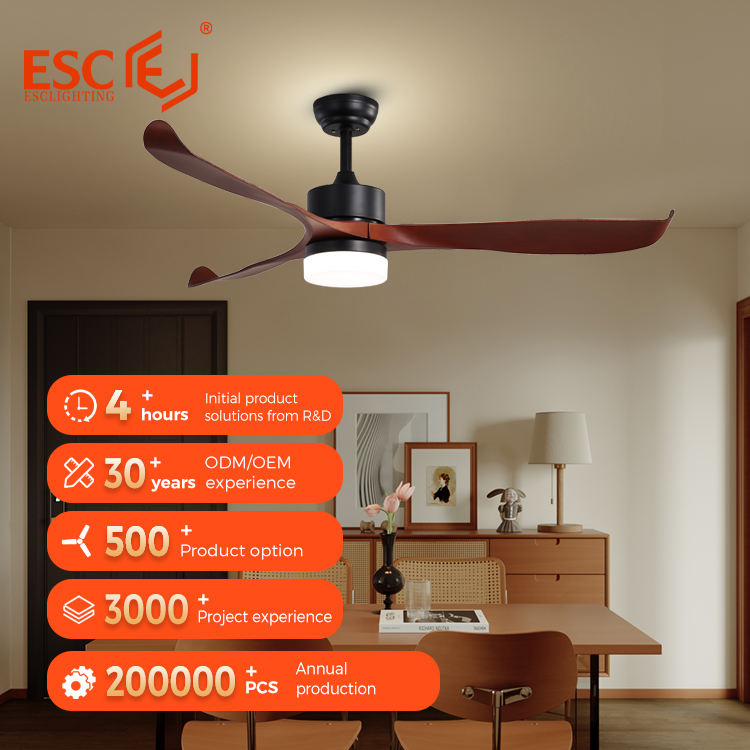 Ventilateur de plafond d'intérieur avec télécommande, moteur DC, 5 vitesses, 56 pouces, style nordique, avec lumière