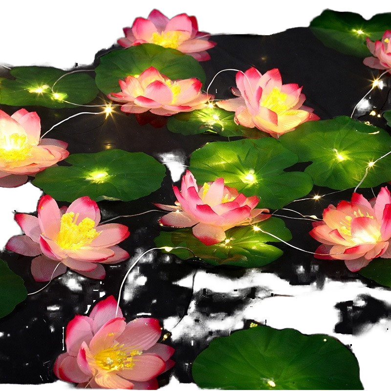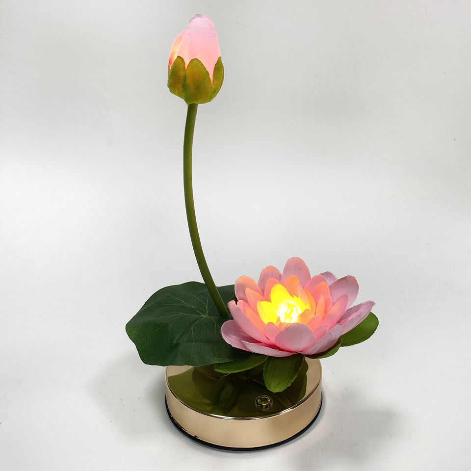 Lumières de lotus LED d'intérieur pour la maison avec des feuilles vertes et un interrupteur tactile décoratif de fleurs roses pour la célébration de la Saint-Valentin
